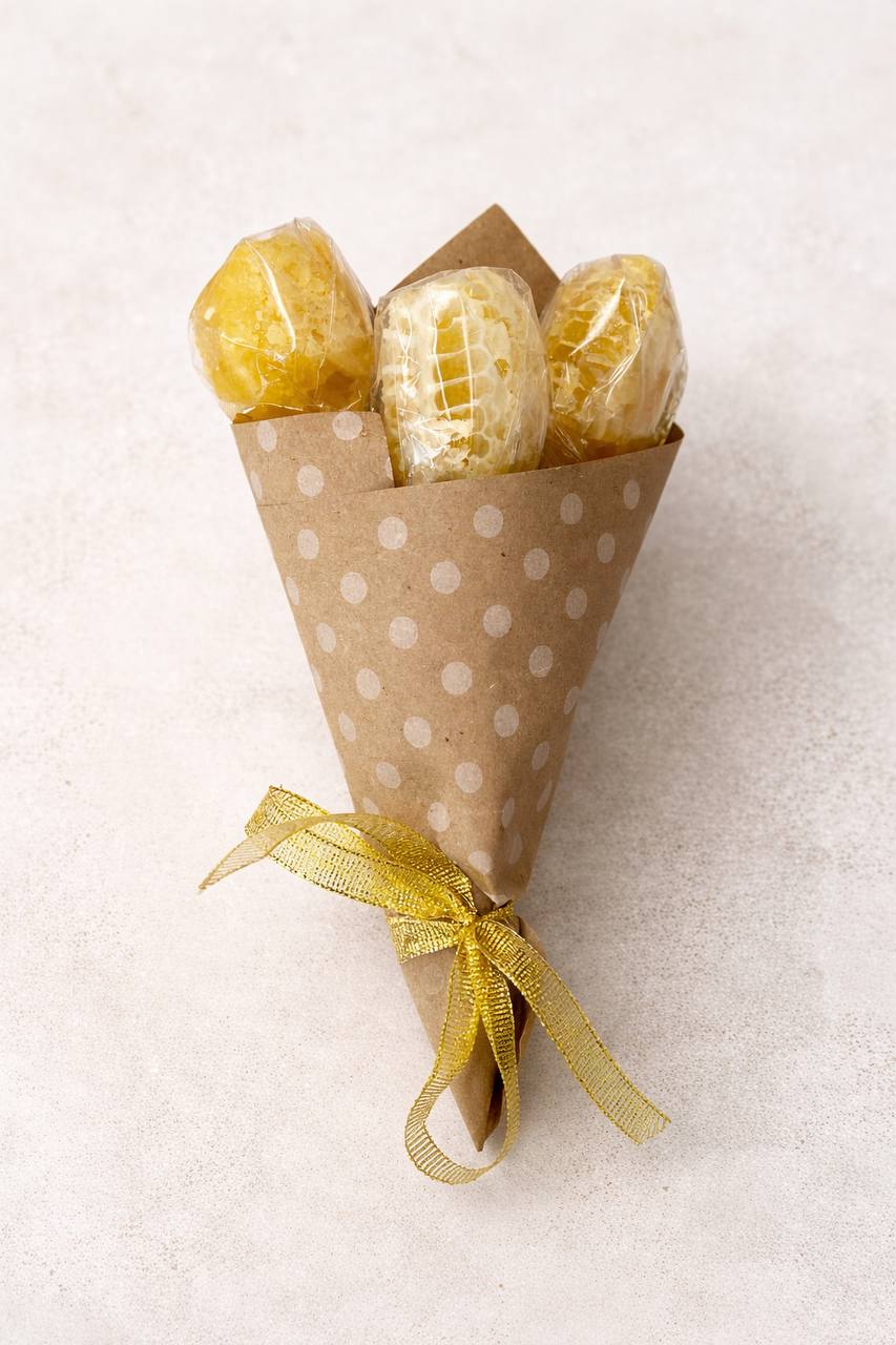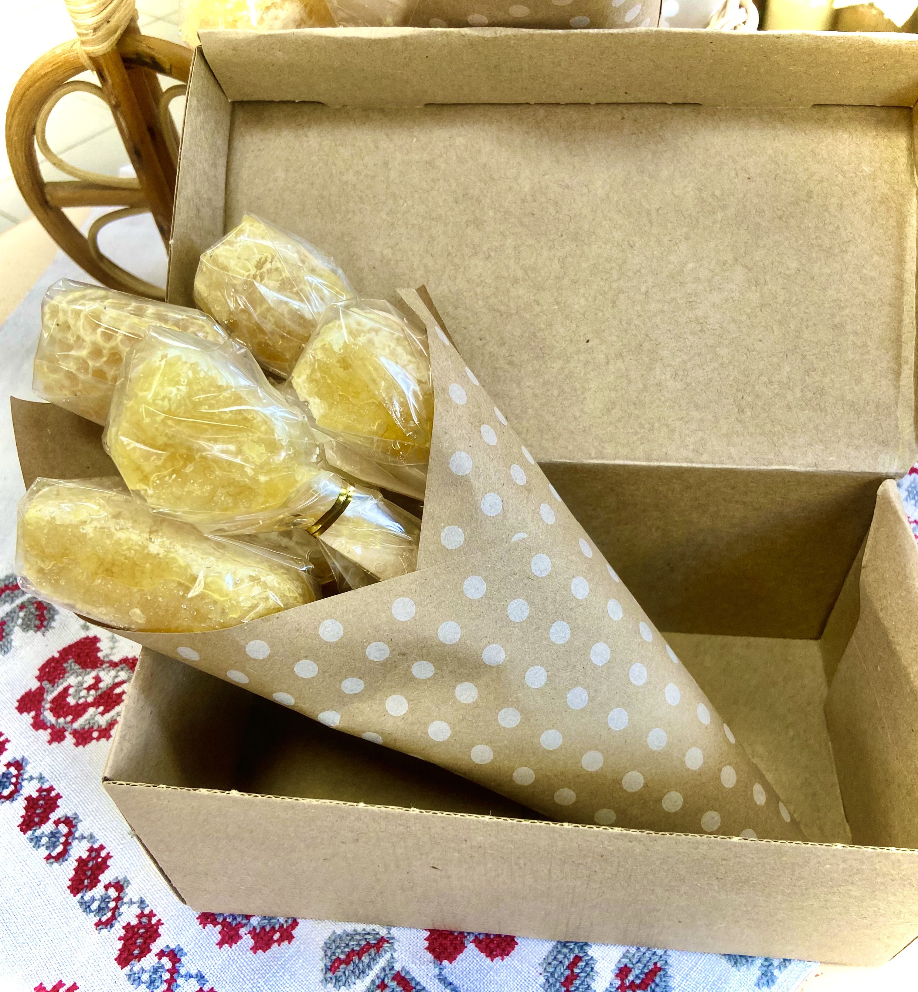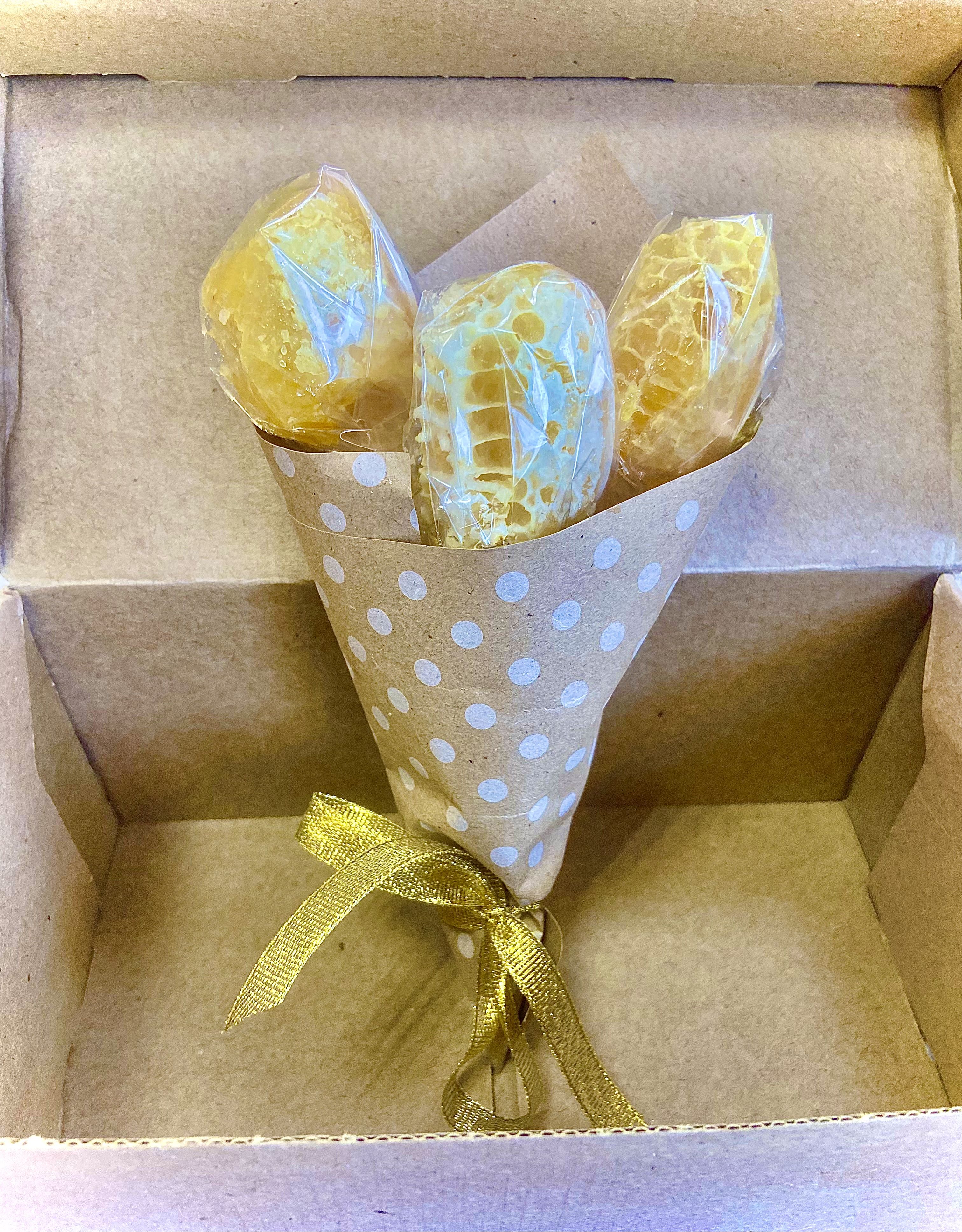 Предлагаем вашему вниманию букет из сотового меда ( 3 ложки) с индивидуальными ложками из дерева. Оформлен стильно, необычно, воспринимается позитивно. Дарится коллегам, мамам, бабушкам, как забота о близких людях, с пожеланиями здоровья.