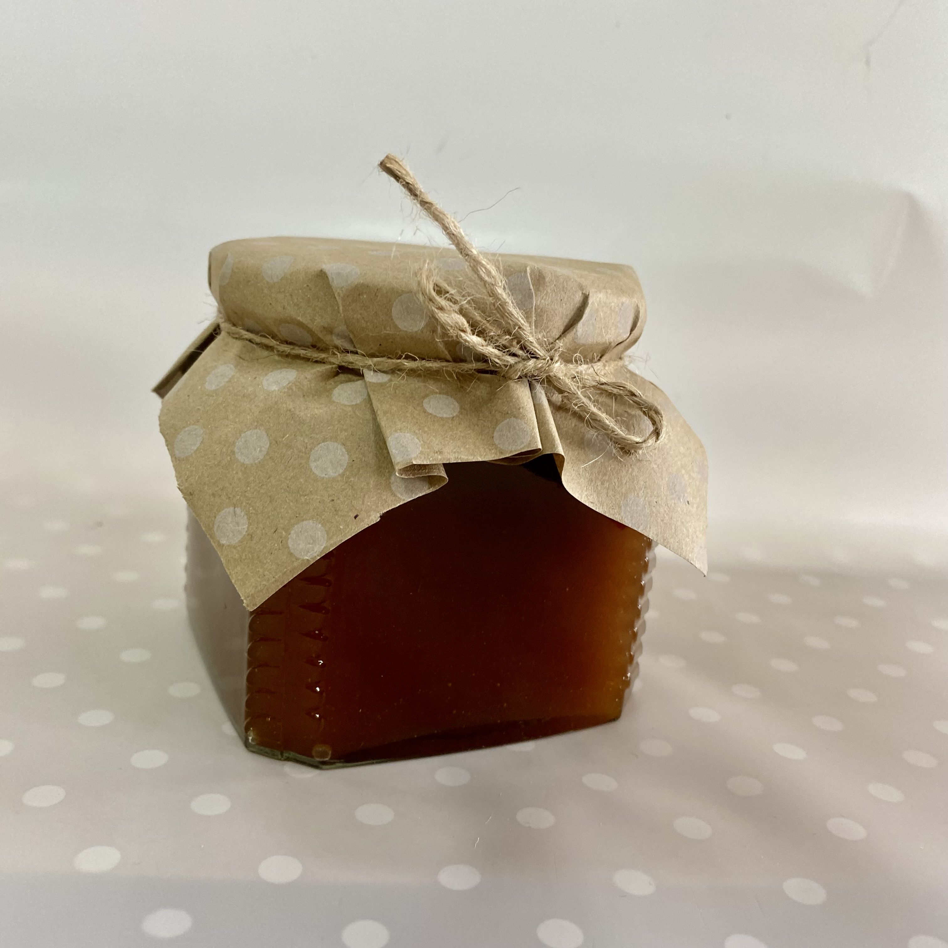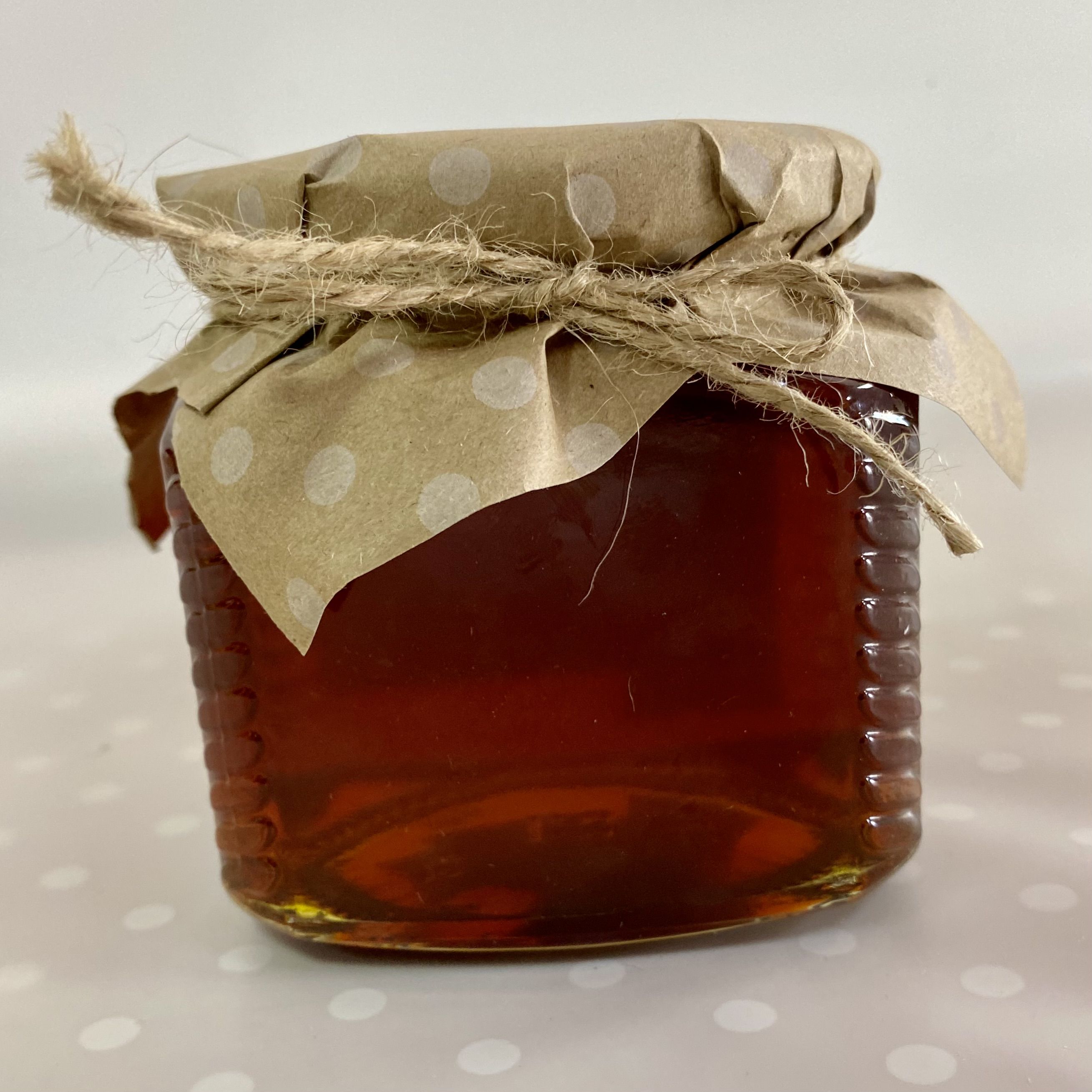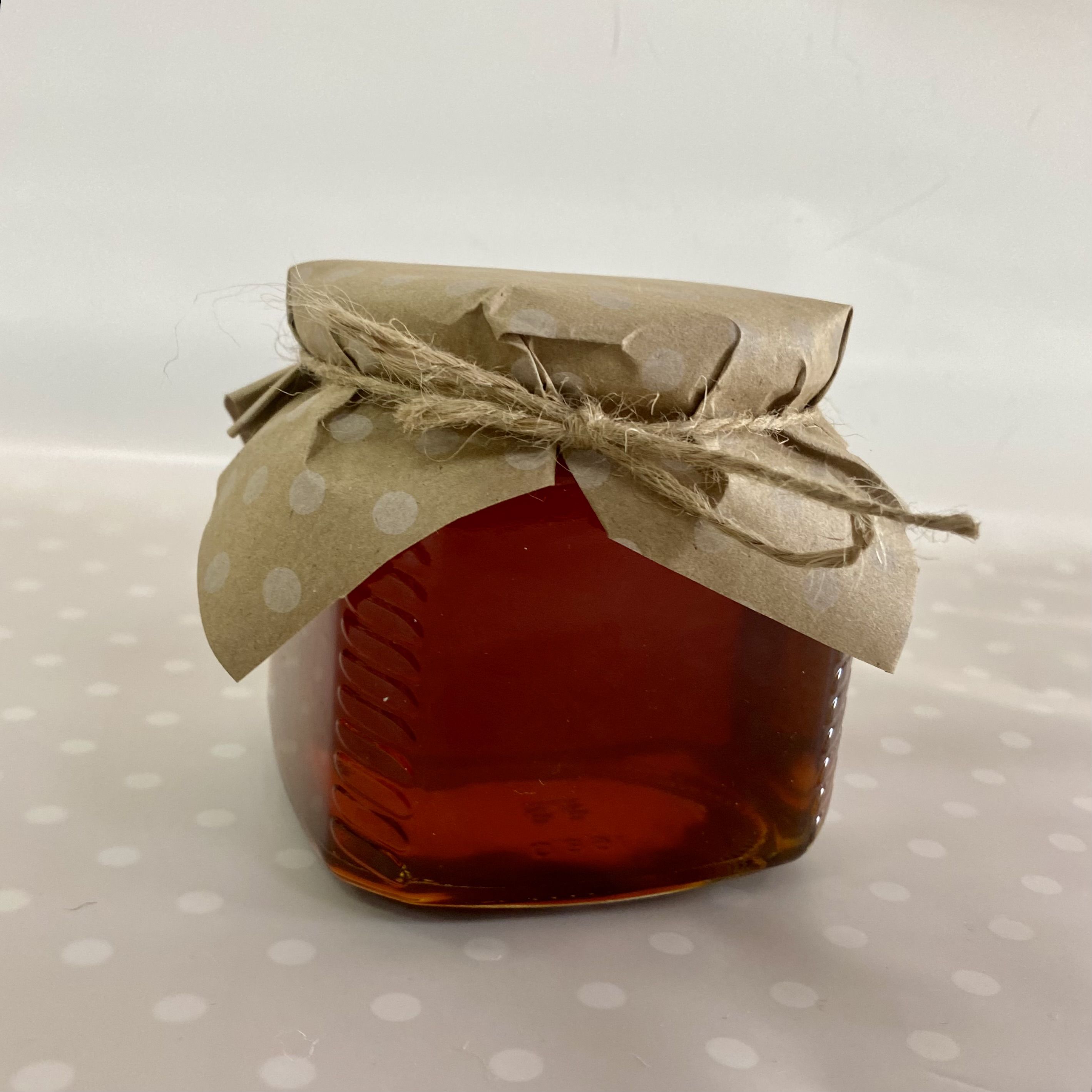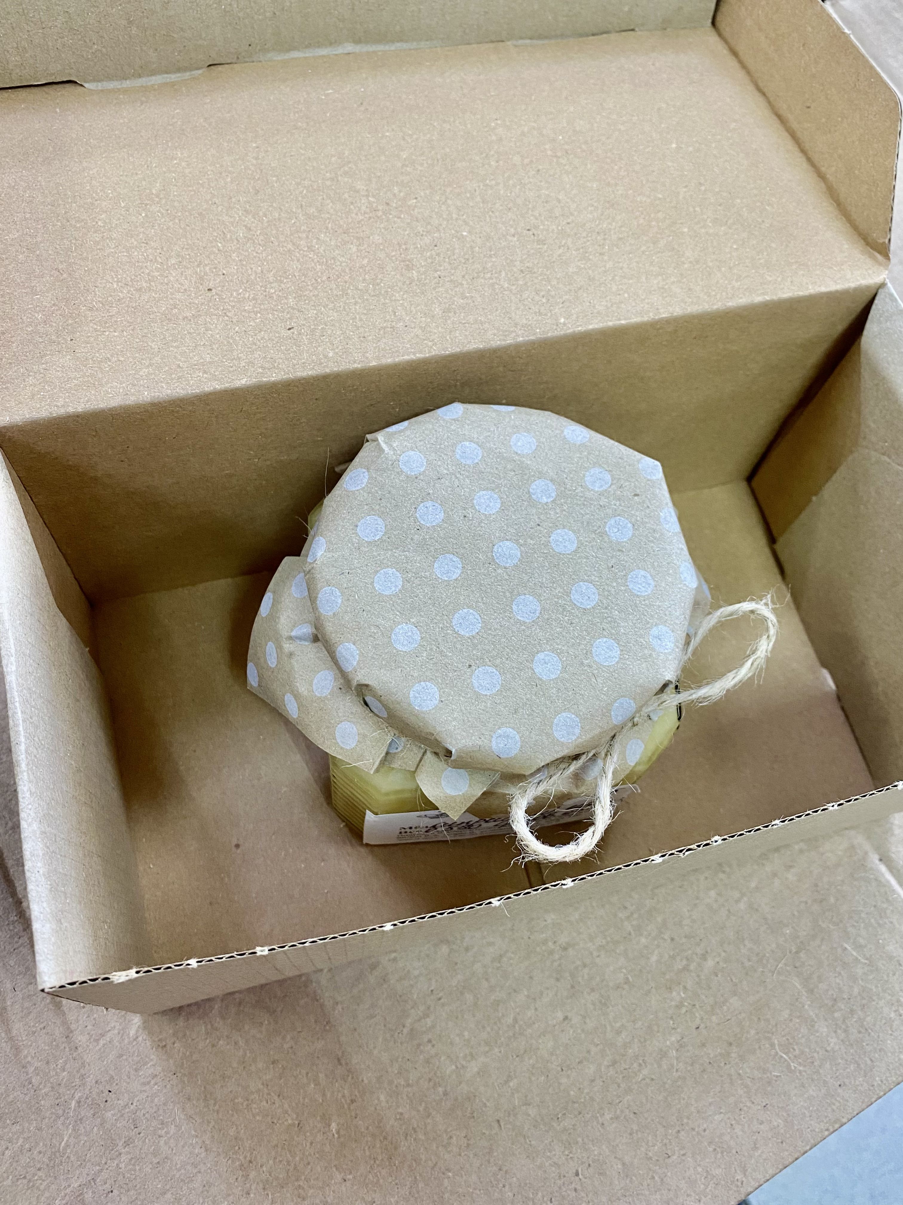 Мёд лучше хранить в стеклянных банках, поэтому мы бережно фасуем его в стеклянную банку, сохраняя все полезные свойства и наряжаем баночку в красивую юбочку из разноцветной крафтовой бумаги в ассортименте.