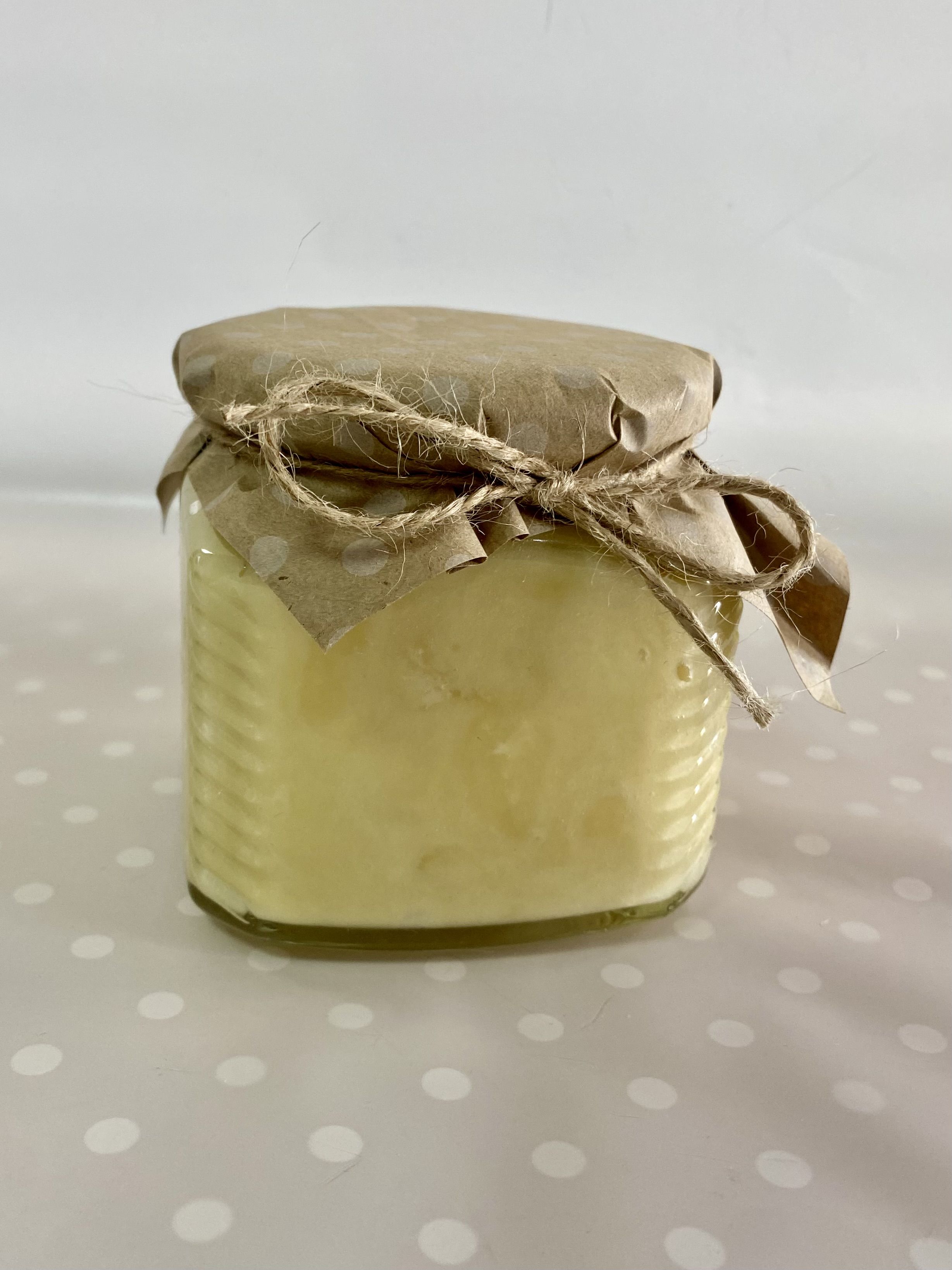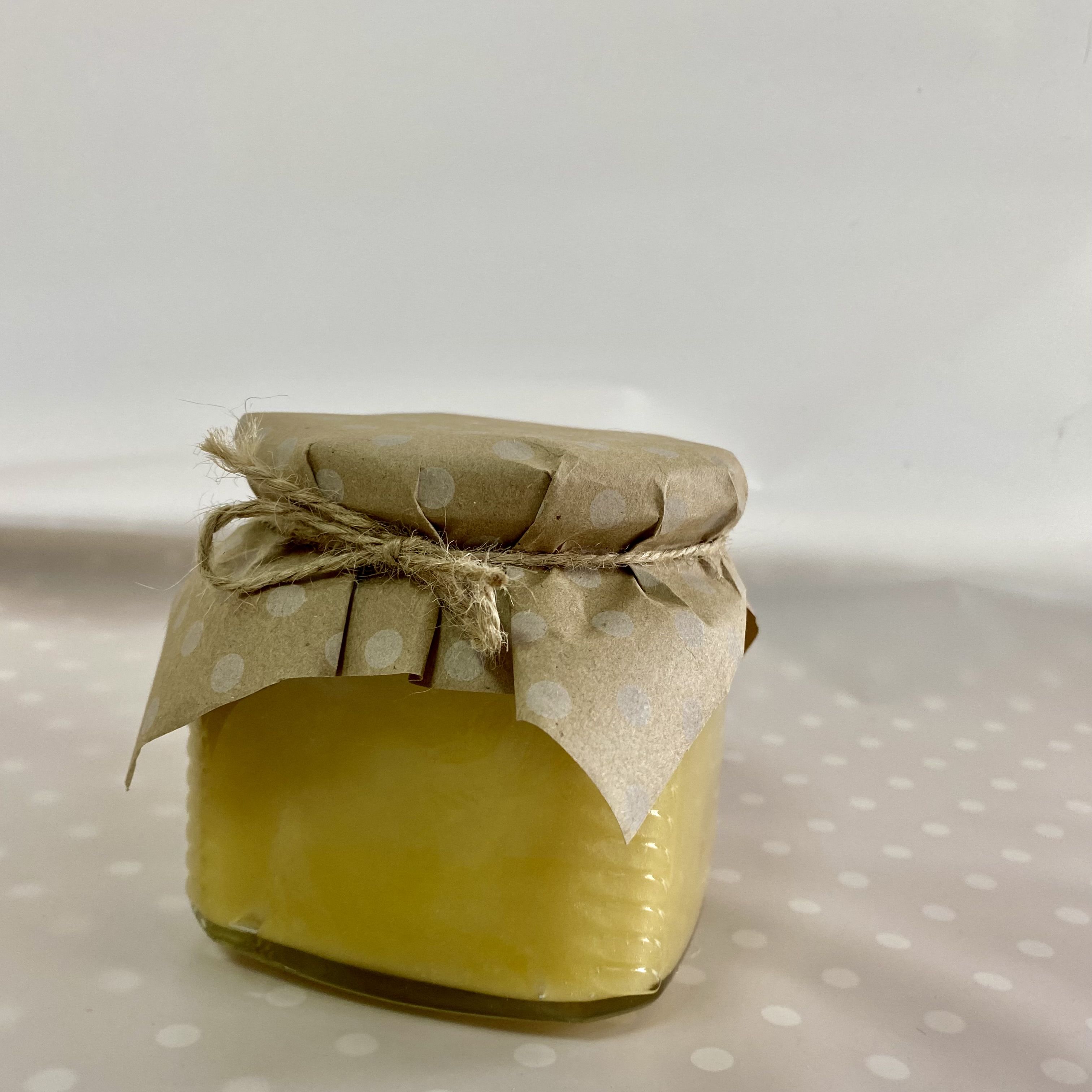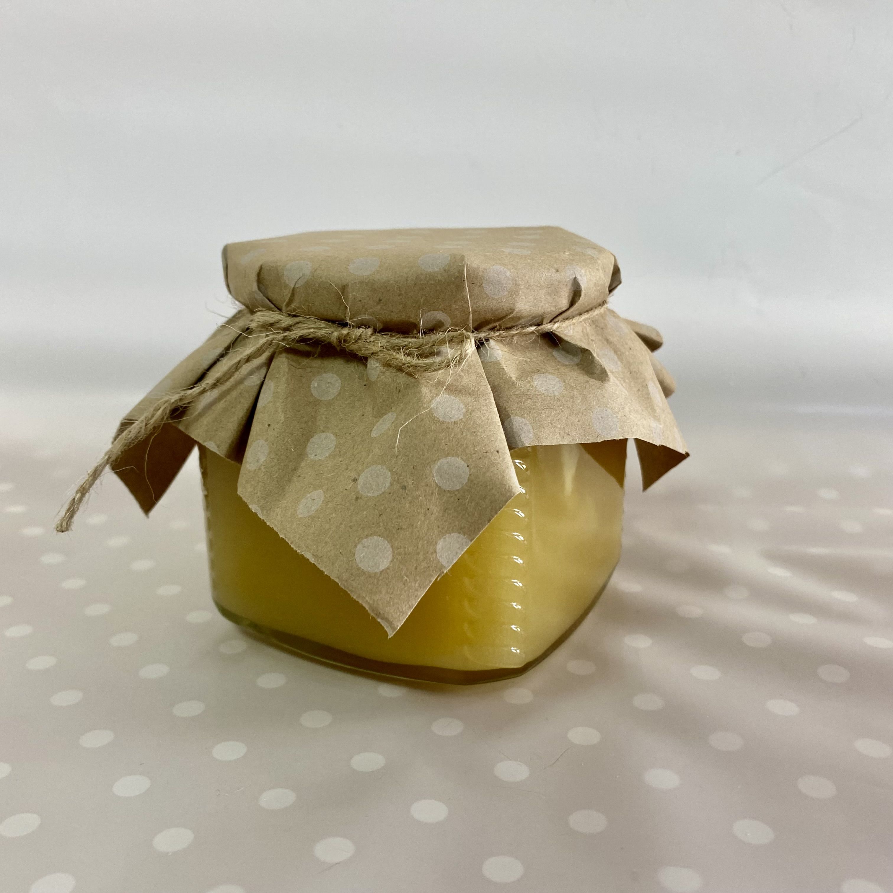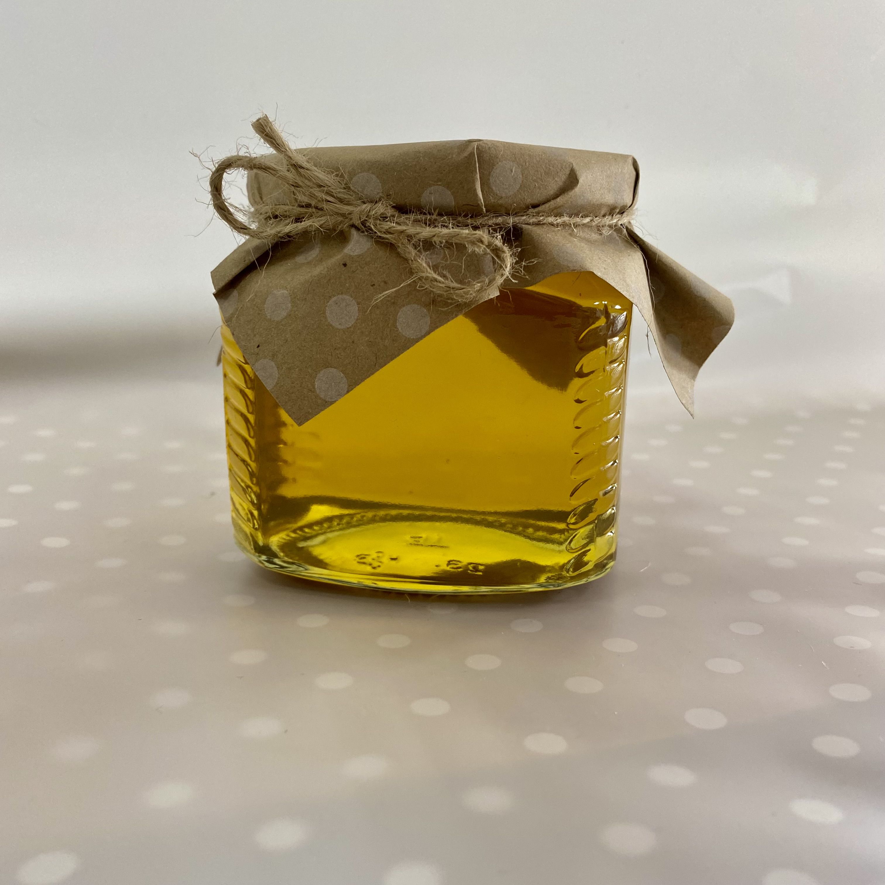 Мёд лучше хранить в стеклянных банках, поэтому мы бережно фасуем его в стеклянную банку, сохраняя все полезные свойства и наряжаем баночку в красивую юбочку из разноцветной крафтовой бумаги в ассортименте.