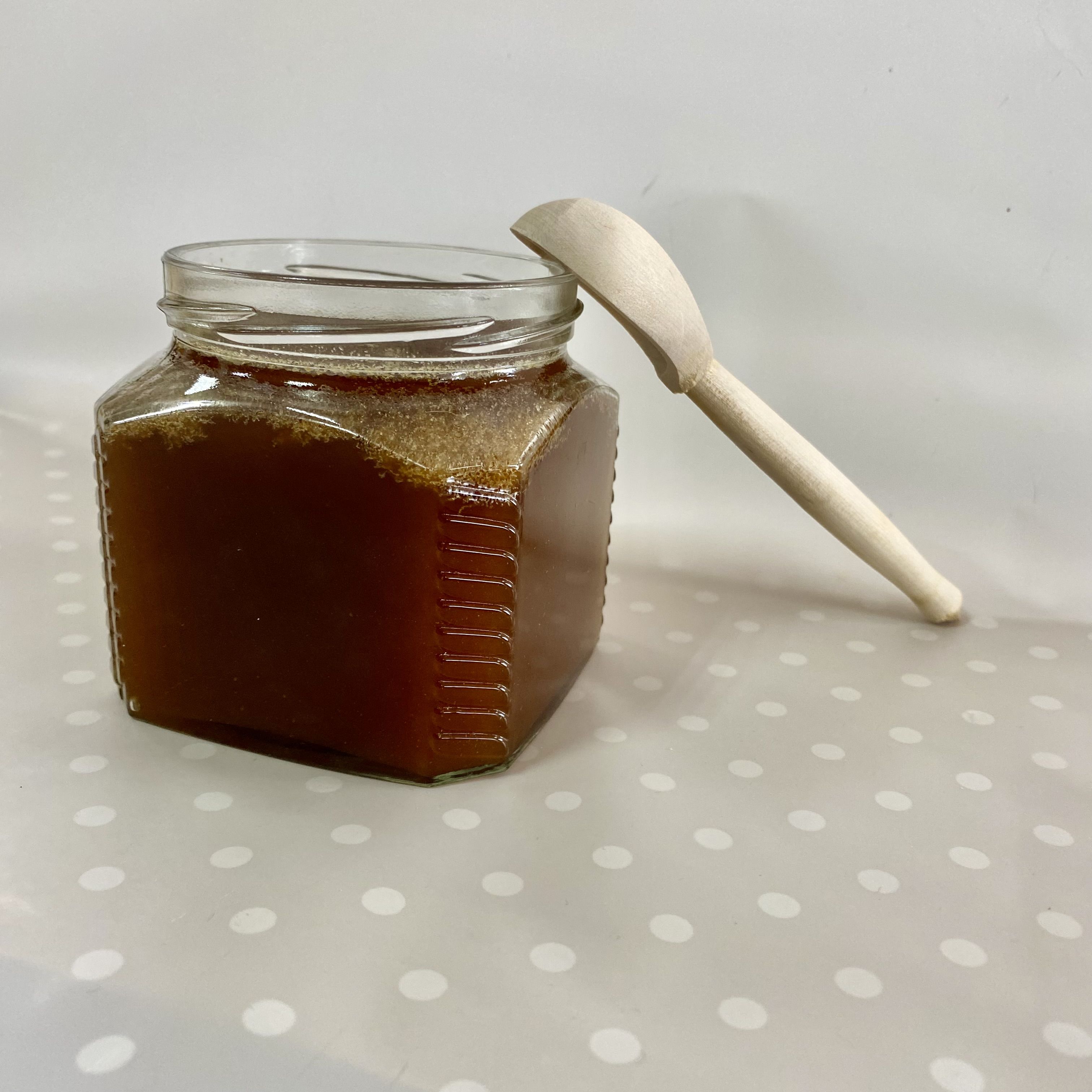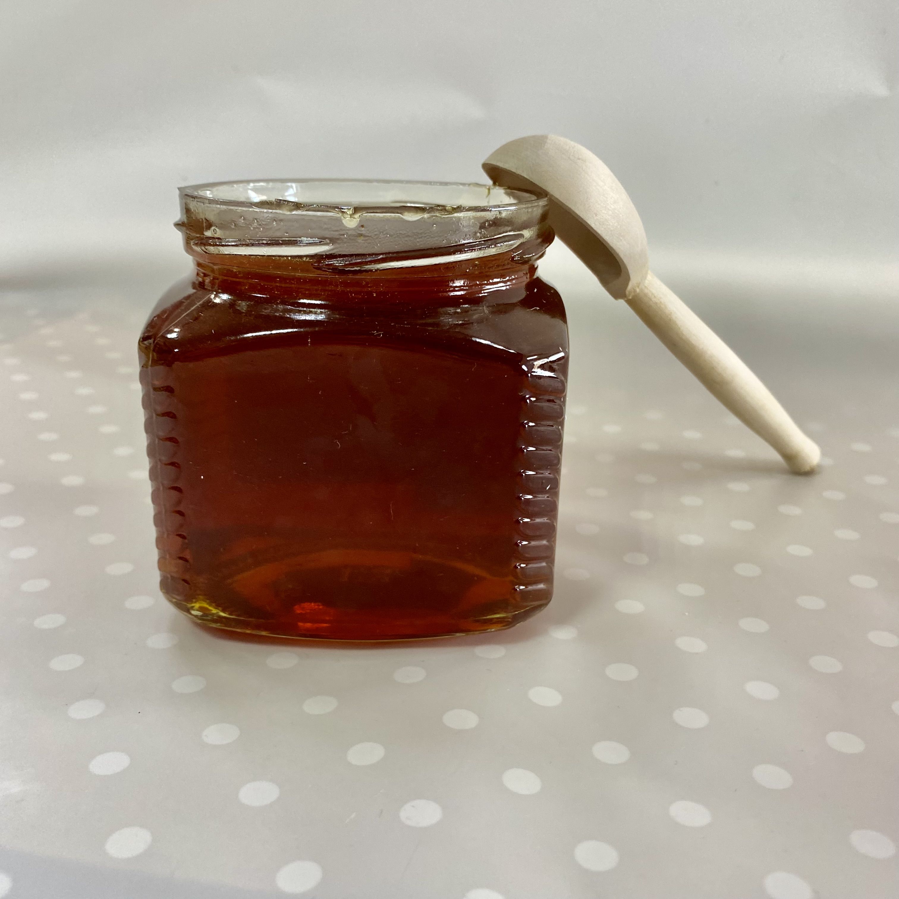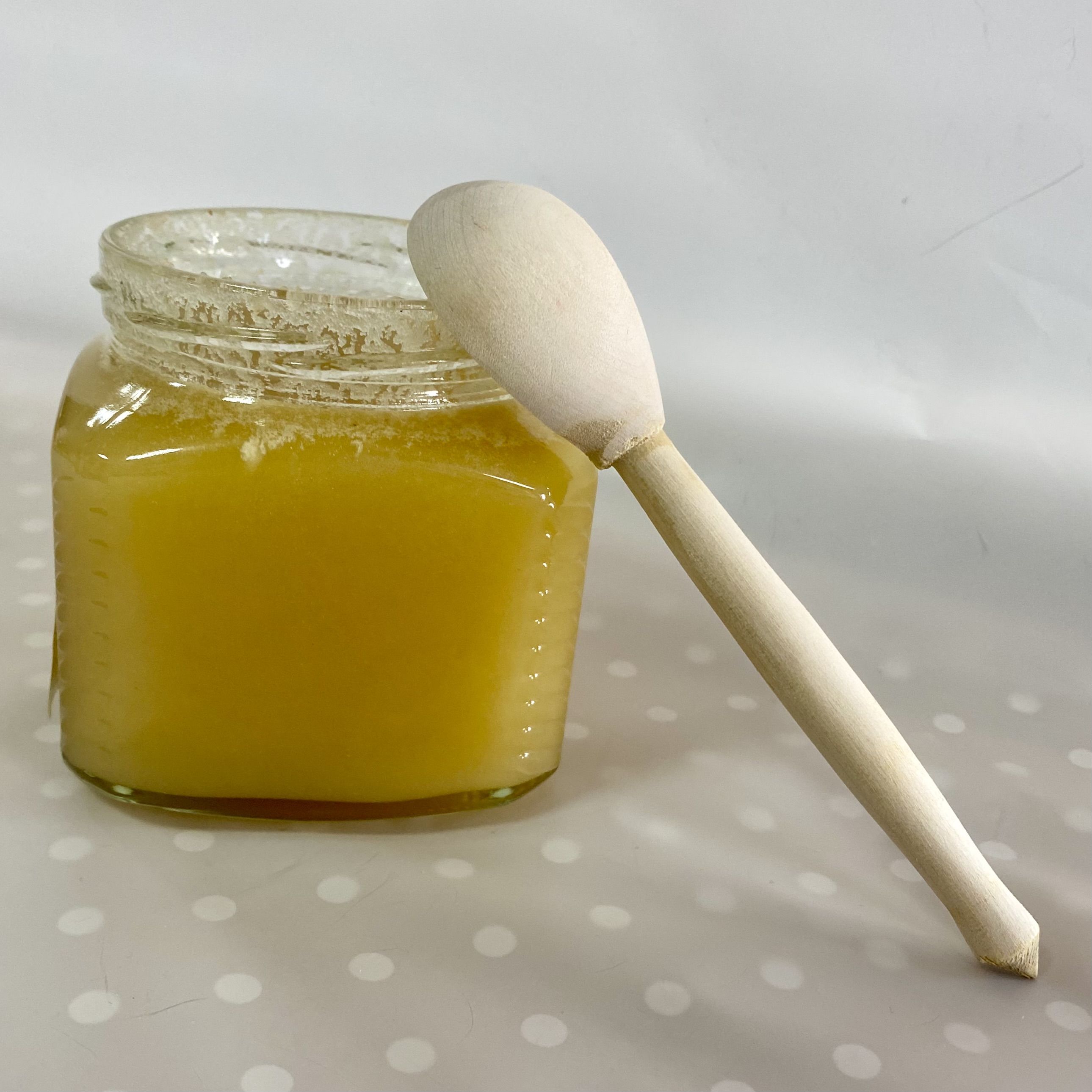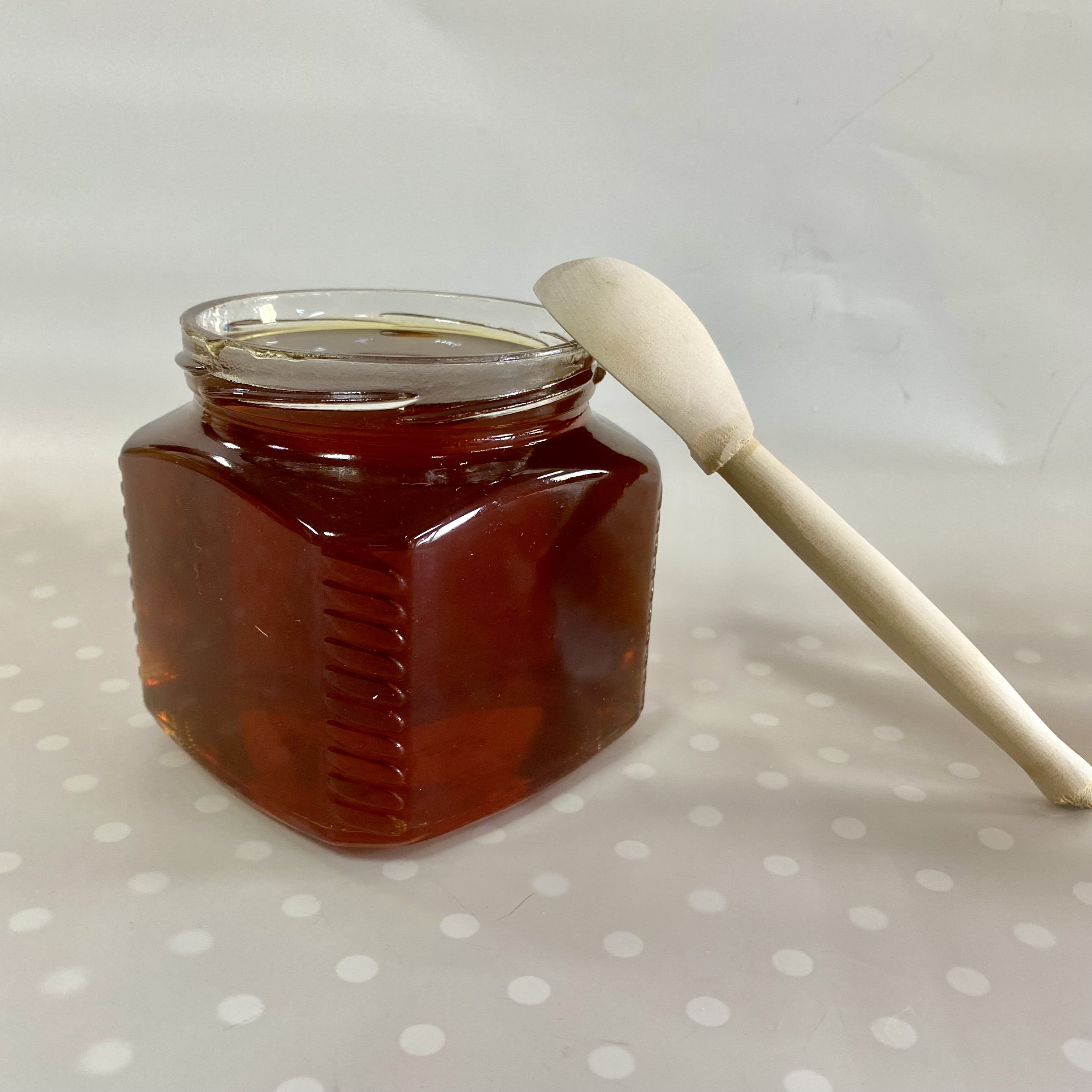 Мёд лучше хранить в стеклянных банках, поэтому мы бережно фасуем его в стеклянную банку, сохраняя все полезные свойства и наряжаем баночку в красивую юбочку из разноцветной крафтовой бумаги в ассортименте.