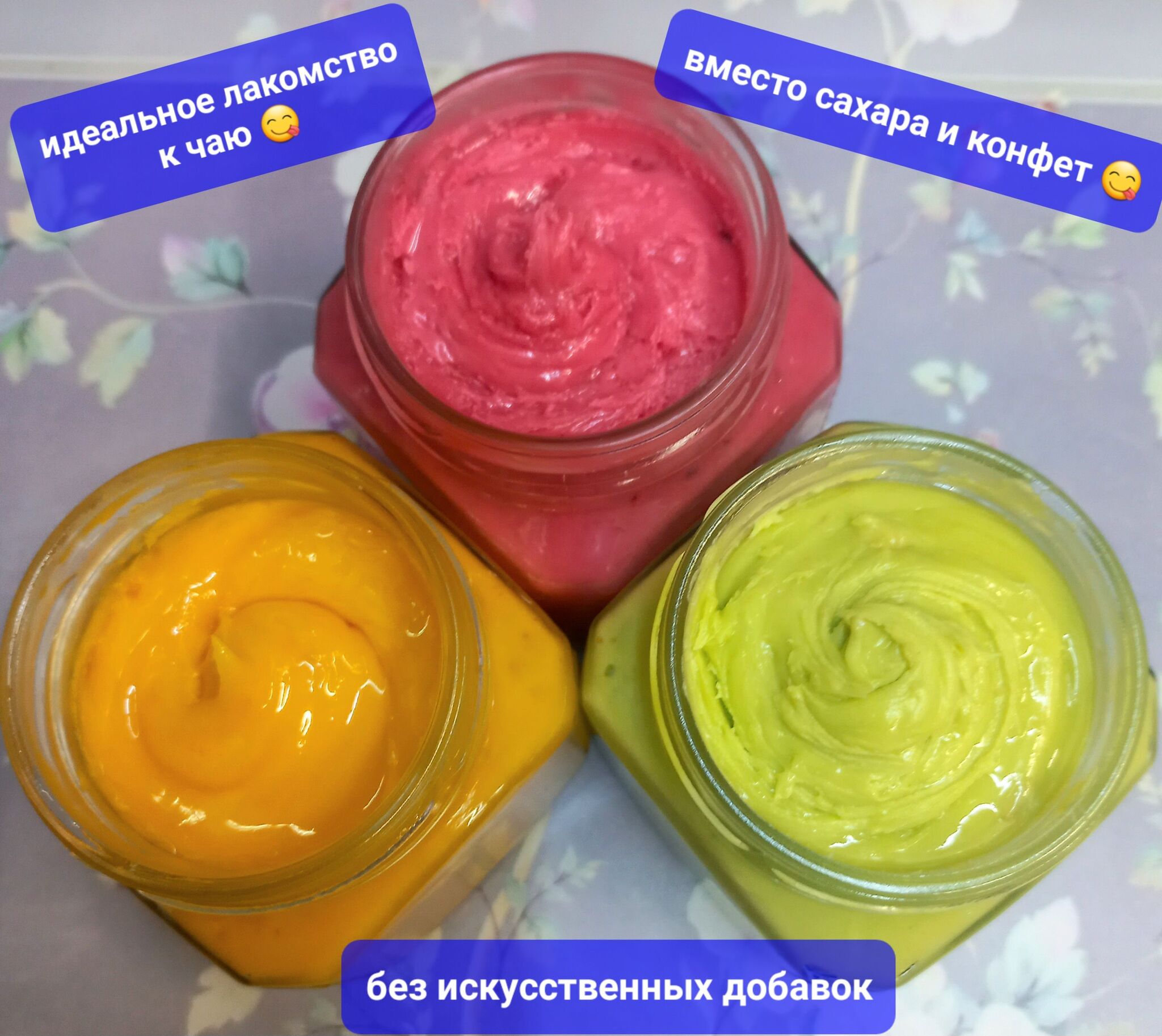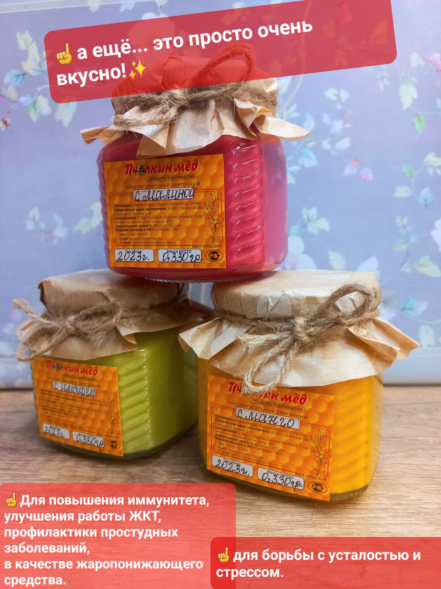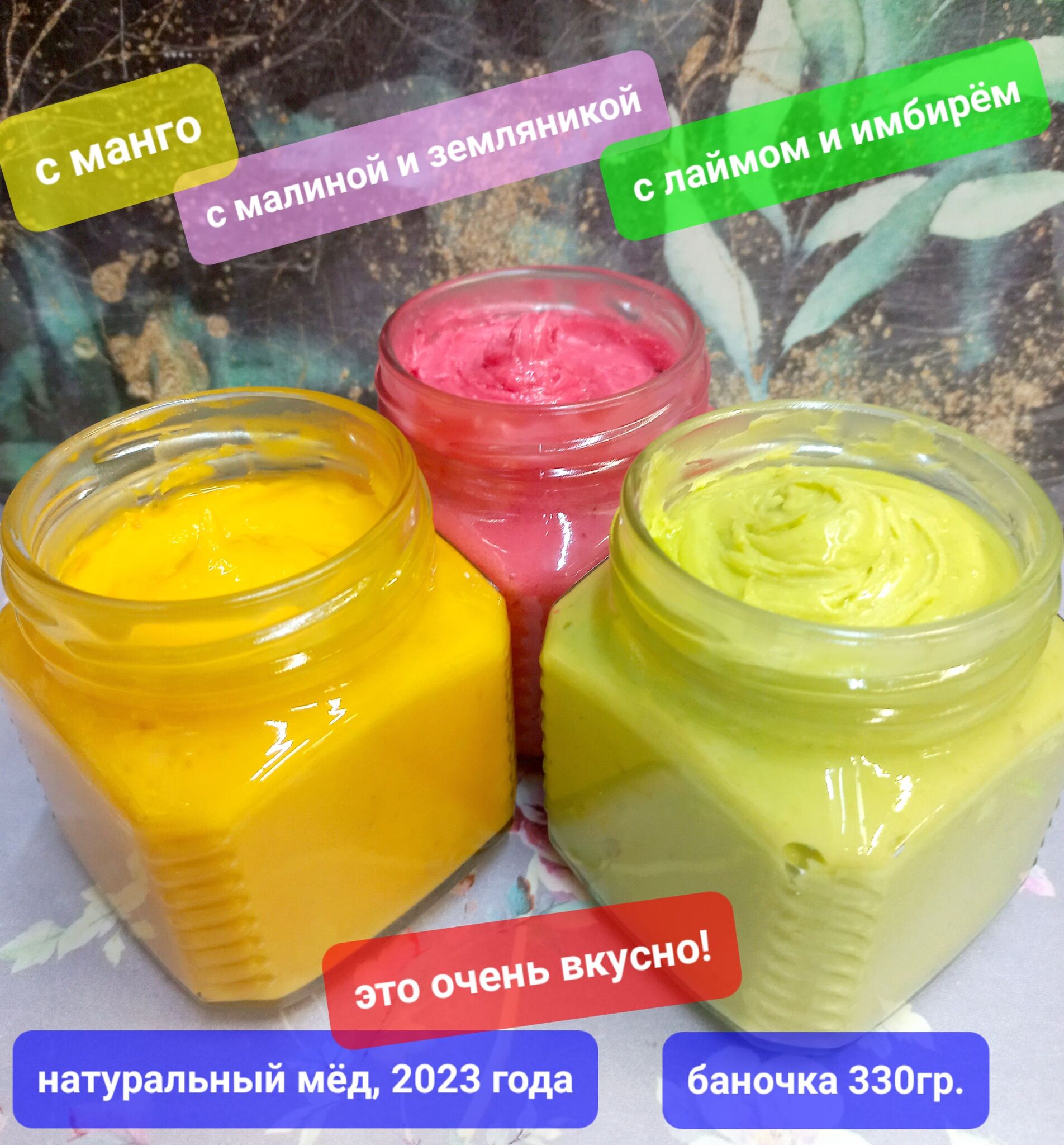 натуральный мёд с натуральными добавками: малина-земляника, имбирь-лайм, манго.