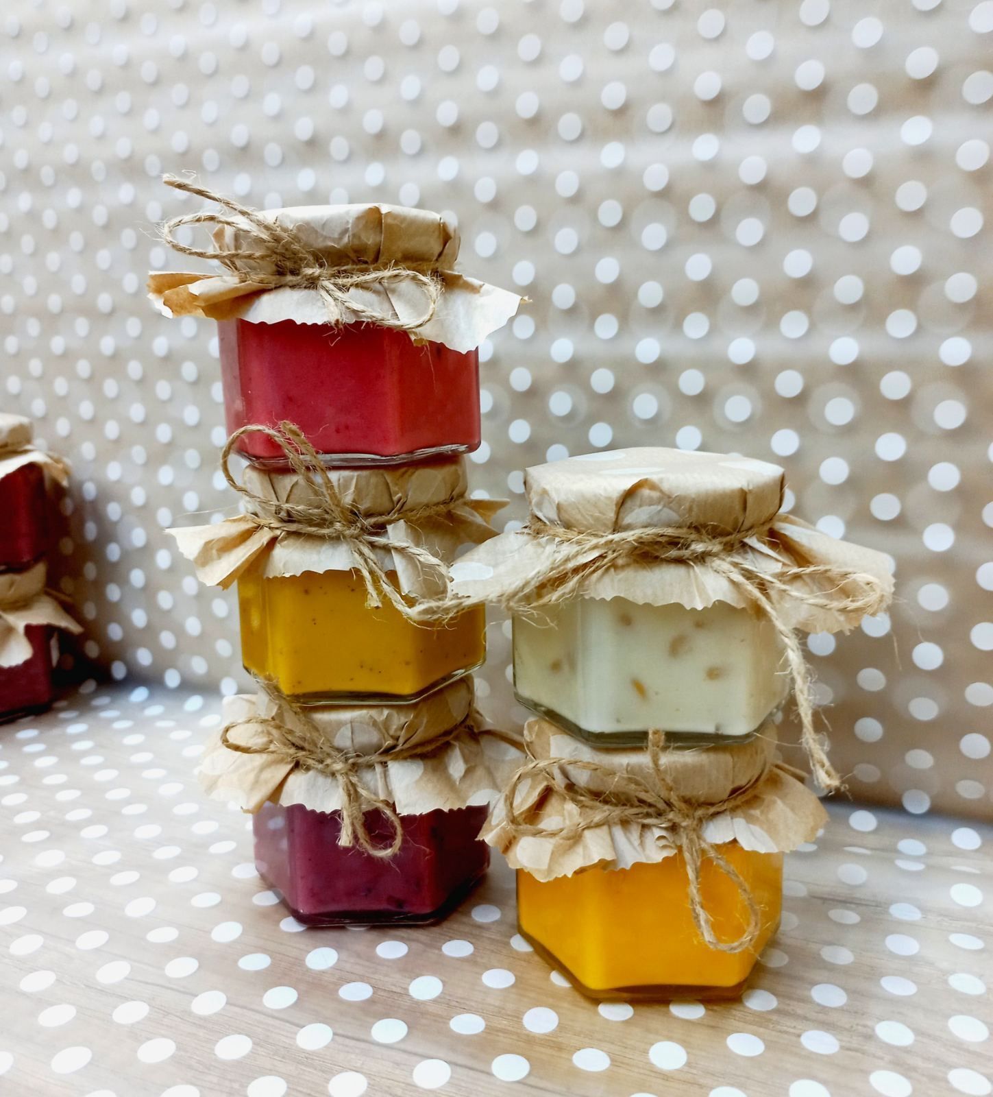 5 баночка шестигранник - крем- мёд с малиной и земляникой