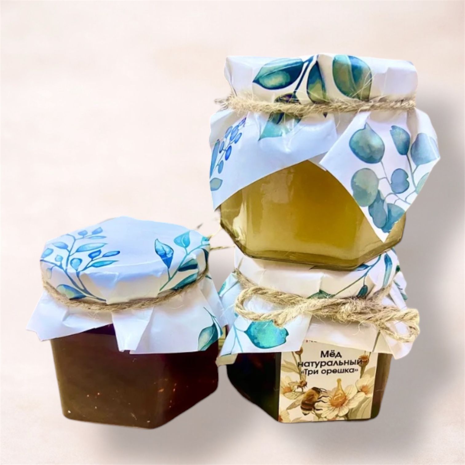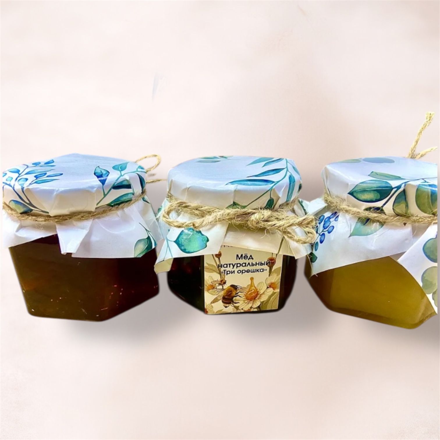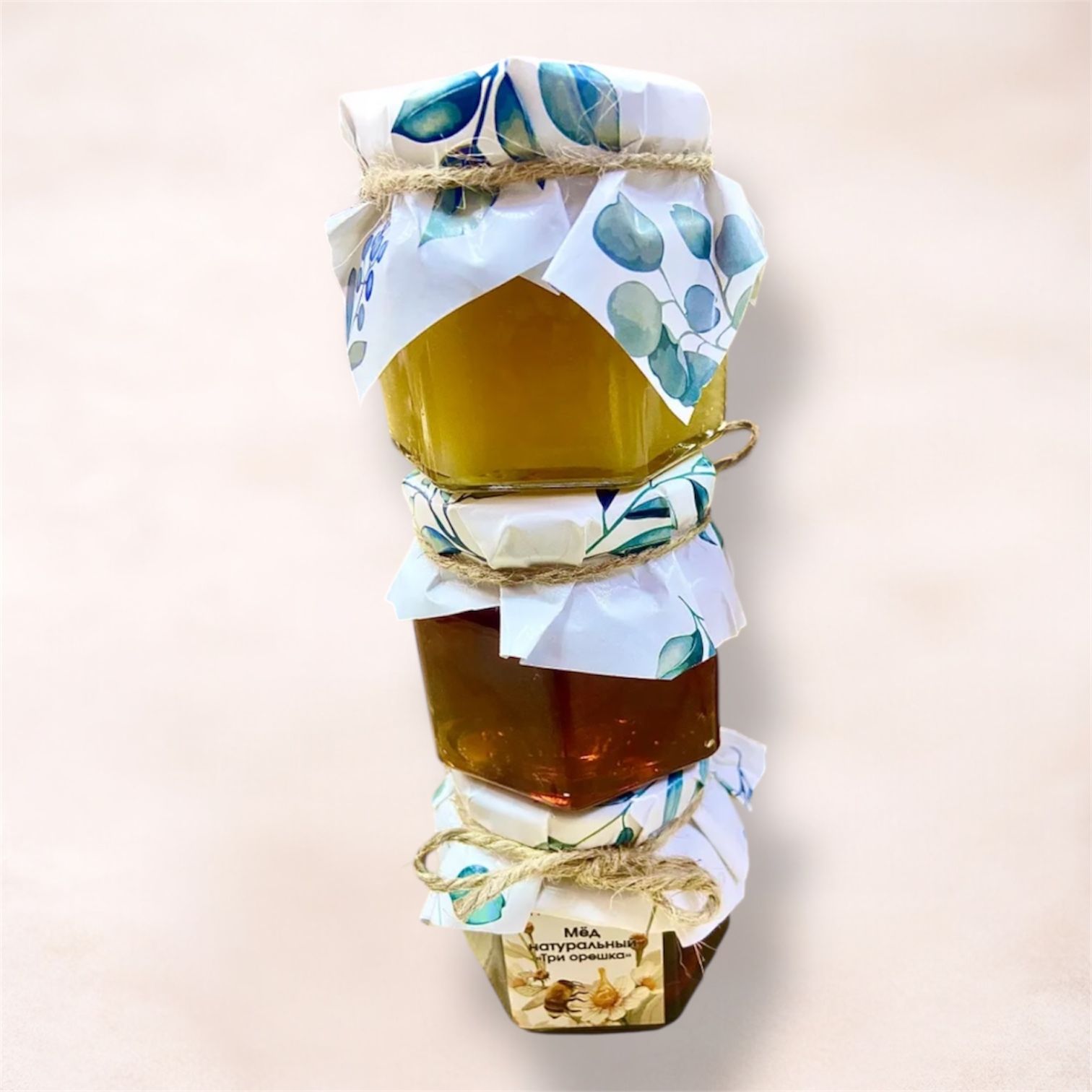 Представляем вашему вниманию набор меда из 3 баночек шестигранников (стекло) по 150 гр.